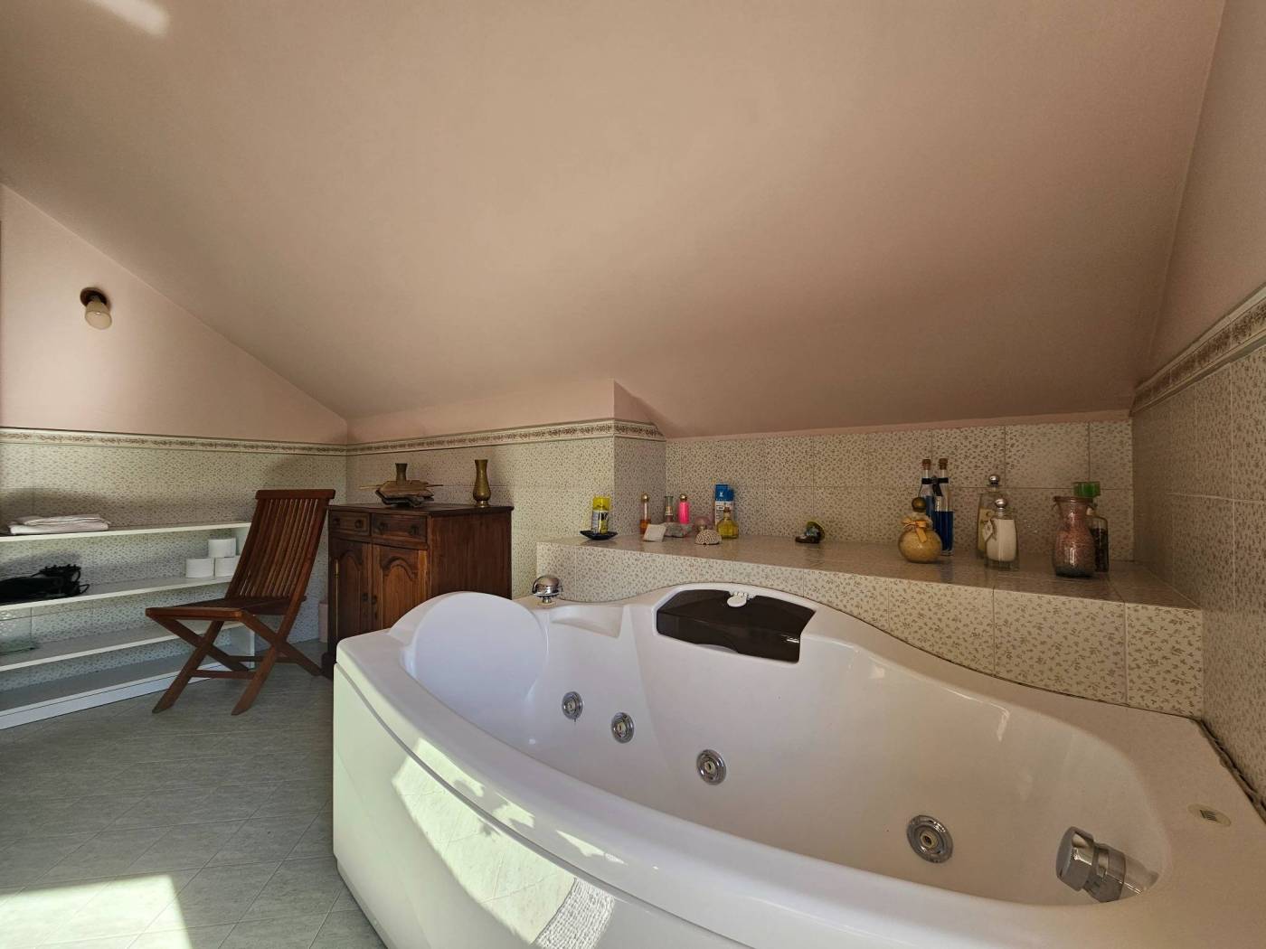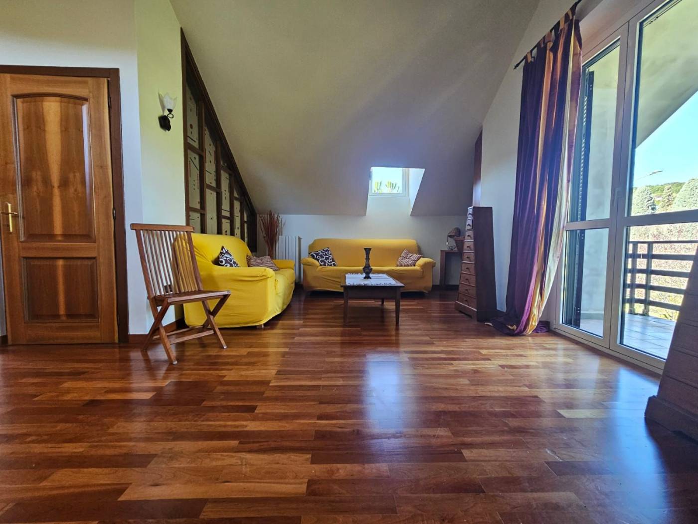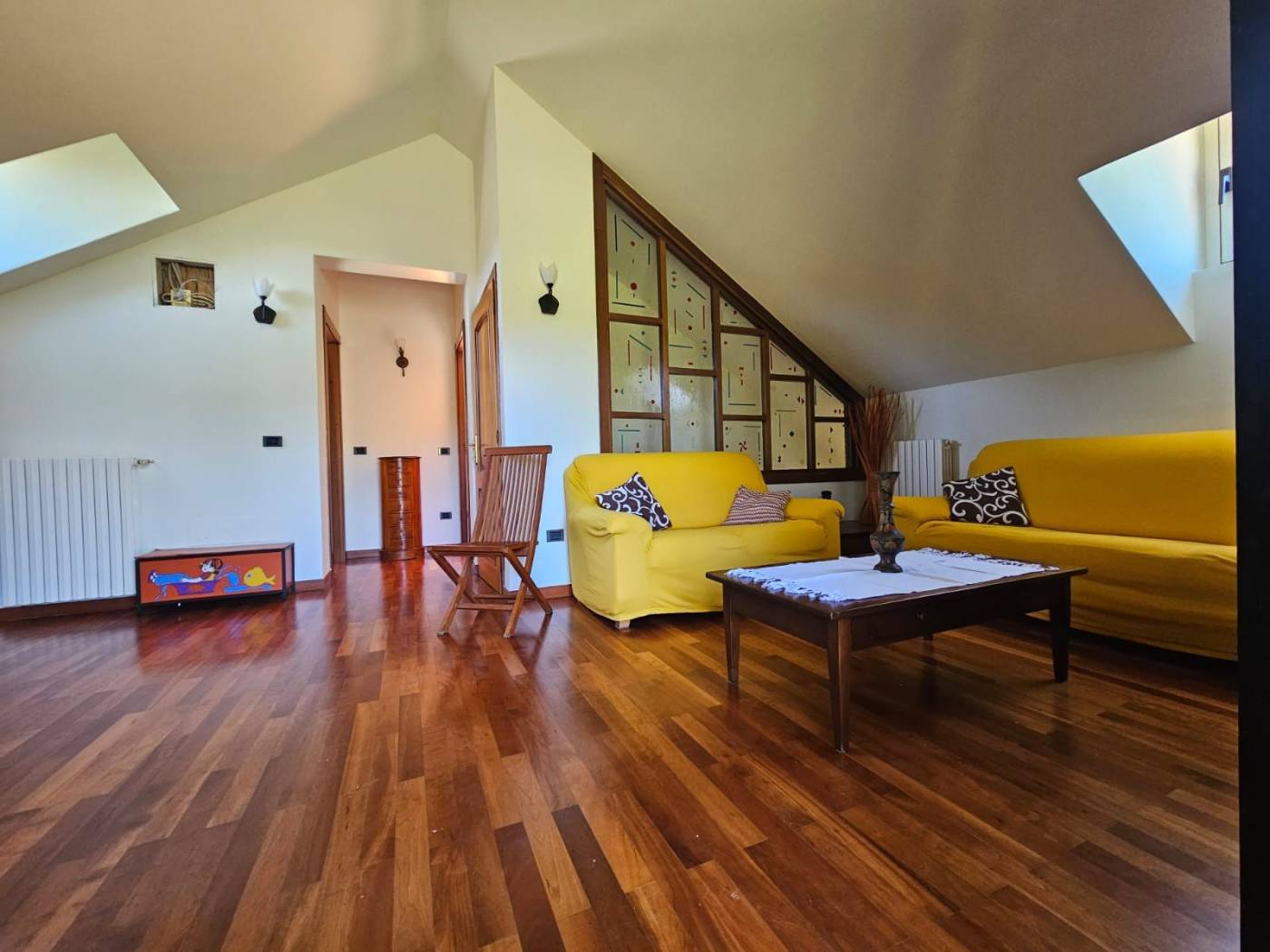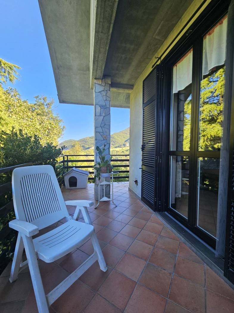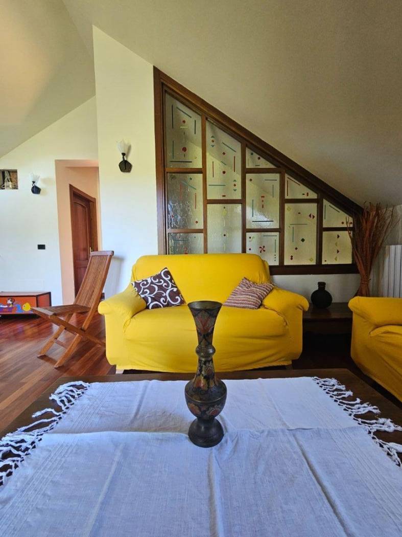 Una scala interna dal soggiorno conduce al primo piano, dove il protagonista è un meraviglioso parquet in perfetto stato. Qui si apre un ambiente dal carattere quasi magico: una grande zona Living con accesso diretto alla terrazza panoramica, da cui godere una vista mozzafiato su tutta la vallata creando un vero punto di forza della Villa. Un ambiente che sembra pensato per chi desidera uno spazio intimo e raffinato.