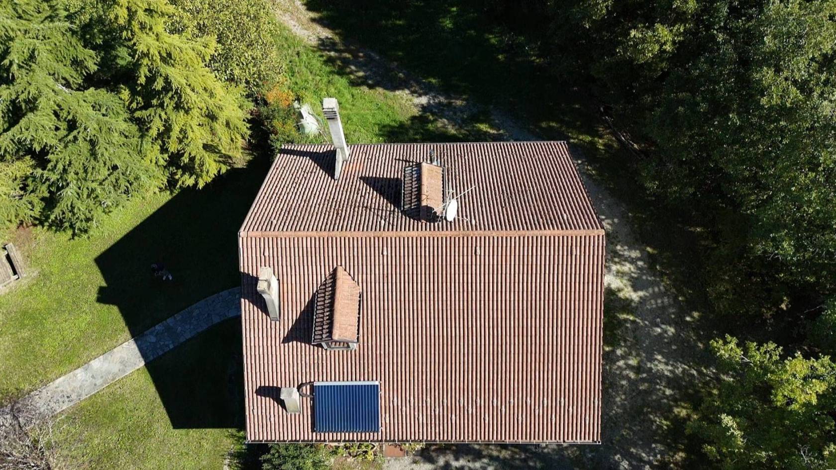 La villa è circondata da quasi un ettaro di terreno, suddiviso tra seminativo e bosco, una metratura ideale per vivere il verde senza eccessive manutenzioni.