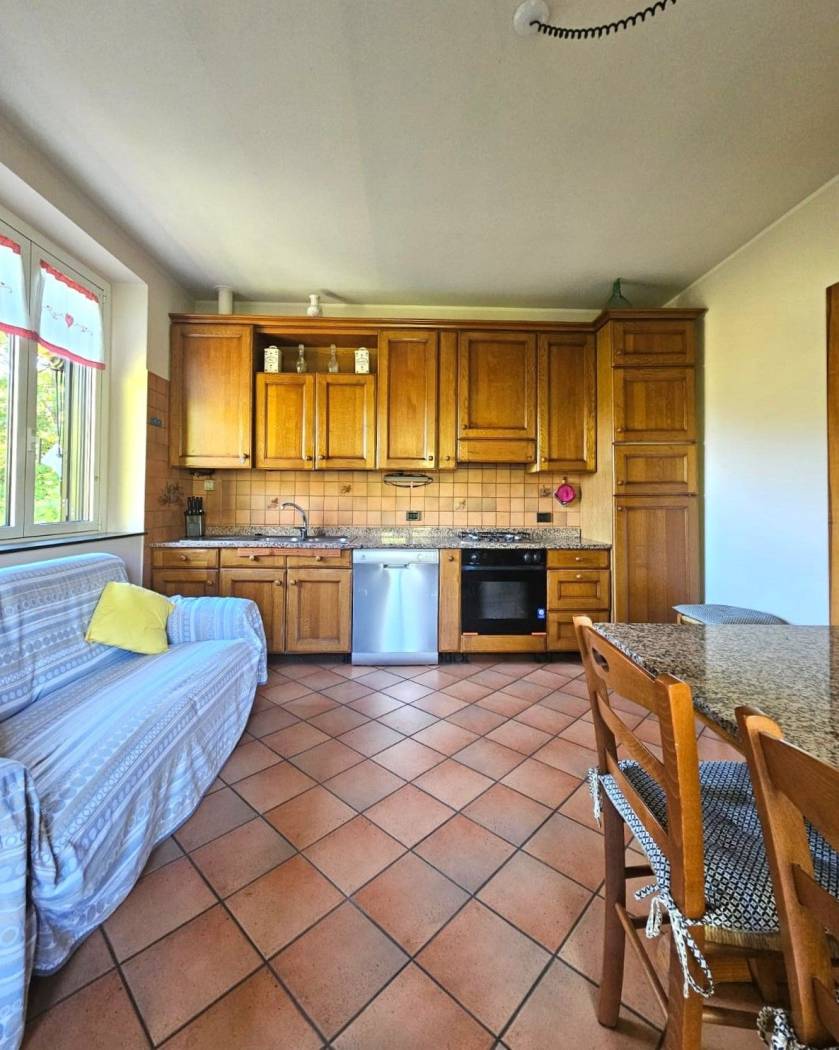 La cucina abitabile, anch'essa con uscita sul terrazzo, è pratica e ben distribuita.