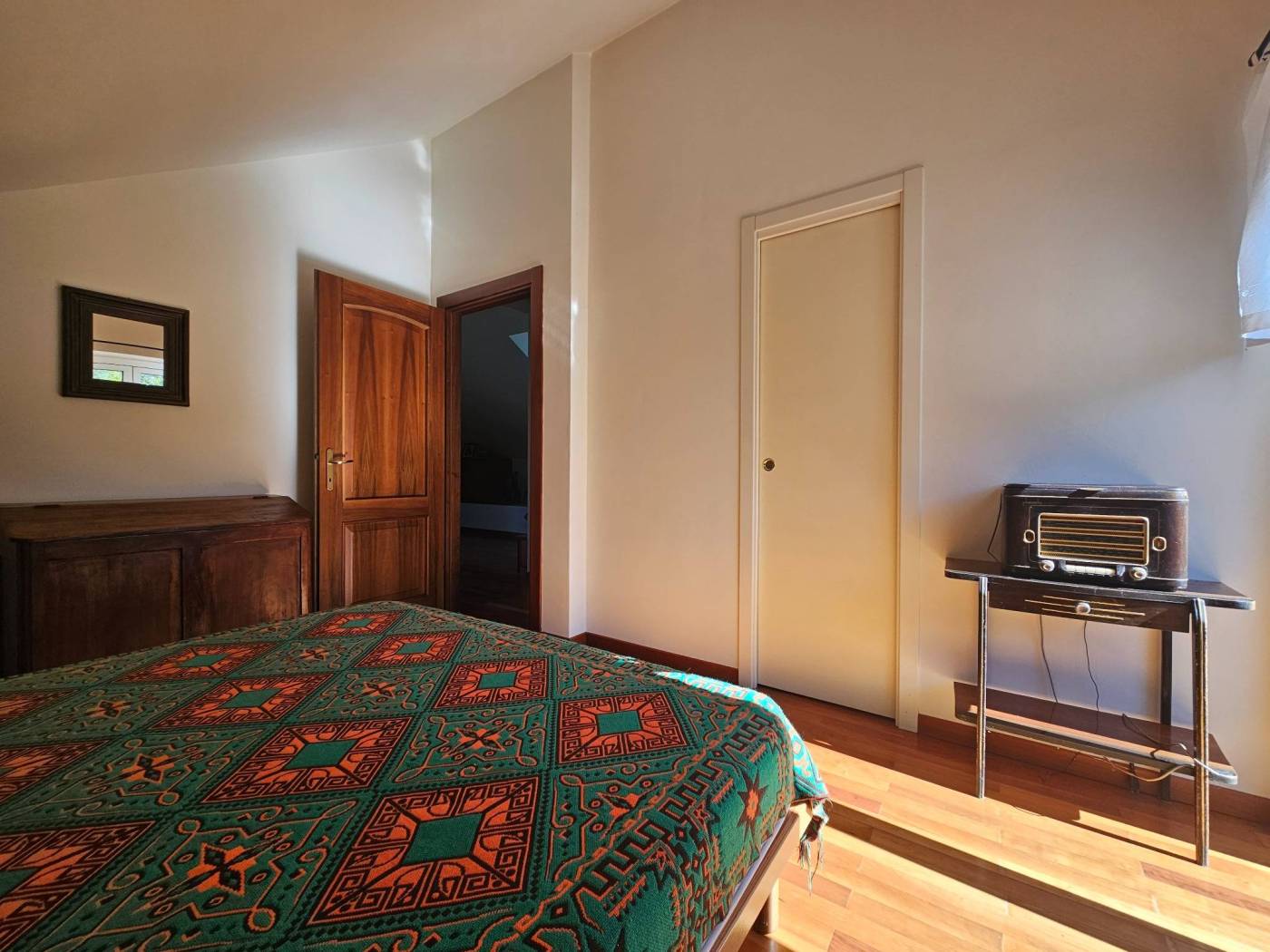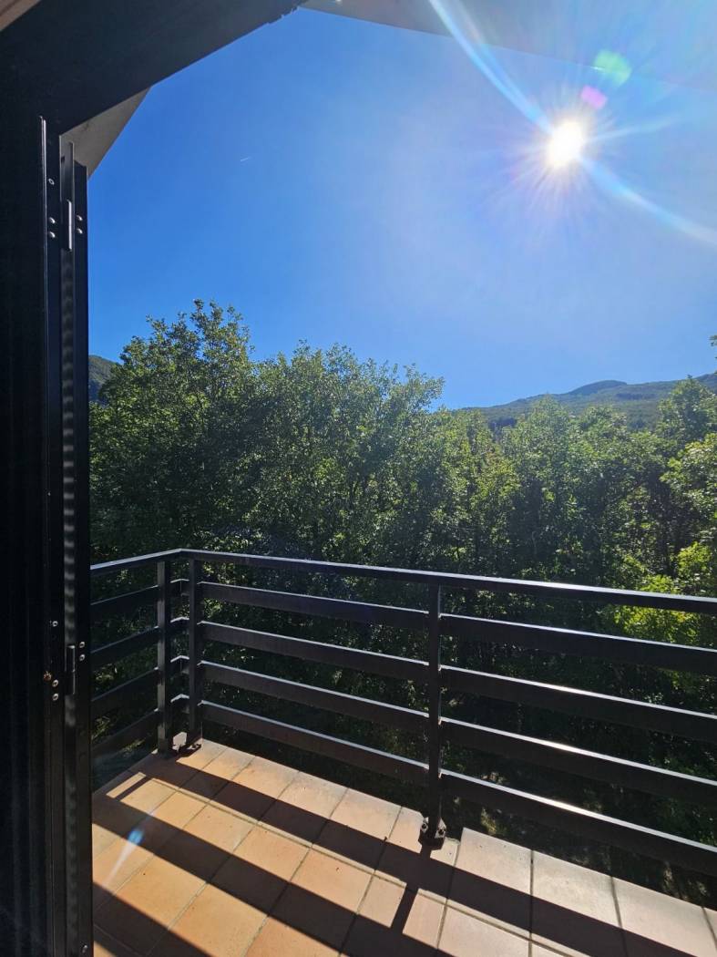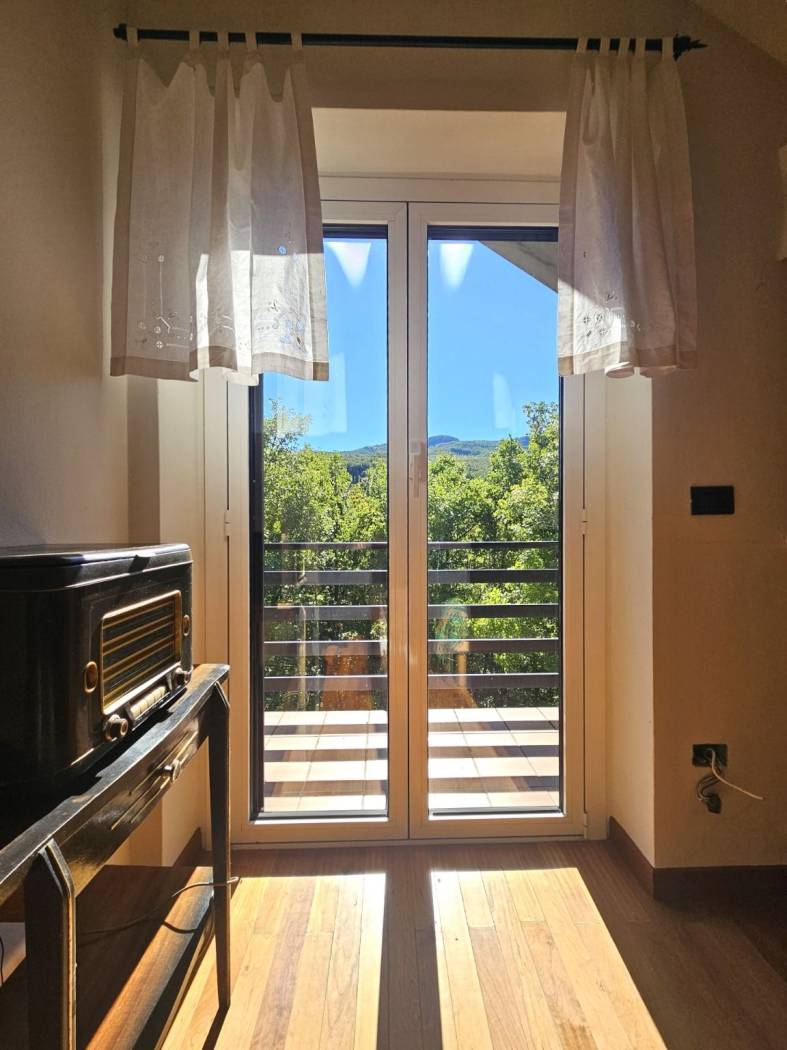 Completano il livello due grandi camere matrimoniali e un bagno ampio con balcone rivolto verso il silenzioso bosco retrostante.